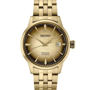 Seiko – “Mockingbird” Automatic Men’s WatchThe dial of this timepiece is designed to express the reflection of a green Mockingbird cocktail in the darkness of a bar at midnight. It features one of the most popular colours within the Presage Cocktail Time series, watches inspired by Japanese cocktail culture and specific drinks from the Star Bar in Tokyo�s sophisticated Ginza area.The combination of the gold second-hand, deep green colour dial and dark leather strap gives the model a classic feel.The Seiko Presage Cocktail Time collection inherits more than a century of watchmaking tradition and remains true to its values of Japanese precision and beauty in every piece.Seiko Presage: Timeless looks, precisely Japanese mechanical timekeeping.Minimalistic watch designs with a distinctly Japanese aesthetic.
